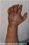 Schwellung nimmt wegen Wirksamkeitsauslauf von Antivenin zu wegen großer